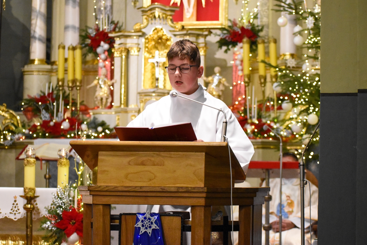Uroczysty charakter Pasterki podkreślała świąteczna oprawa liturgiczna, piękny śpiew kolęd oraz obecność żłóbka, przy którym wierni mogli zatrzymać się na chwilę osobistej modlitwy. Atmosfera skupienia i radości sprzyjała głębokiemu przeżywaniu tej szczególnej nocy, w której Kościół ogłasza światu radosną nowinę o narodzeniu Zbawiciela.